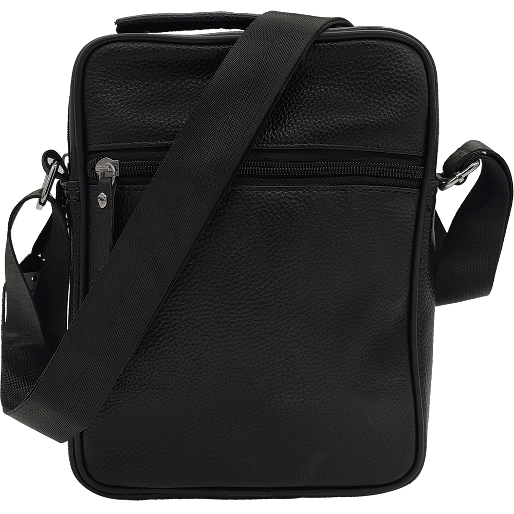 Ανδρικό Τσαντάκι Δερμάτινο Χιαστί Μεγάλο, Με Λαβή Χειρός, Κλείνει με Φερμουάρ
