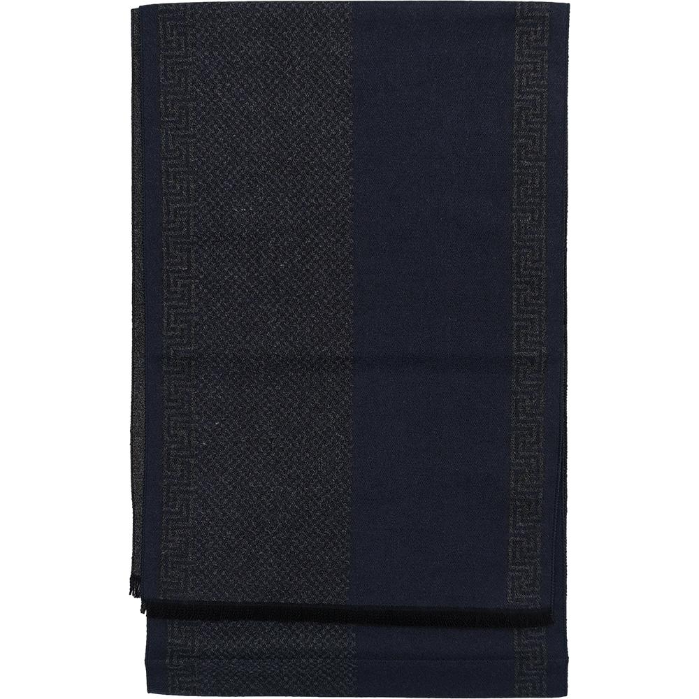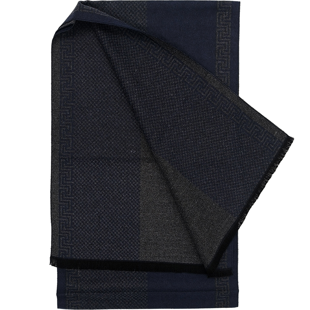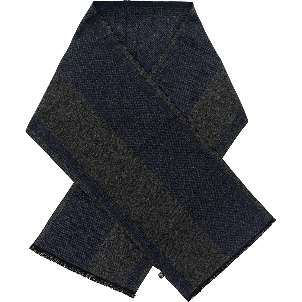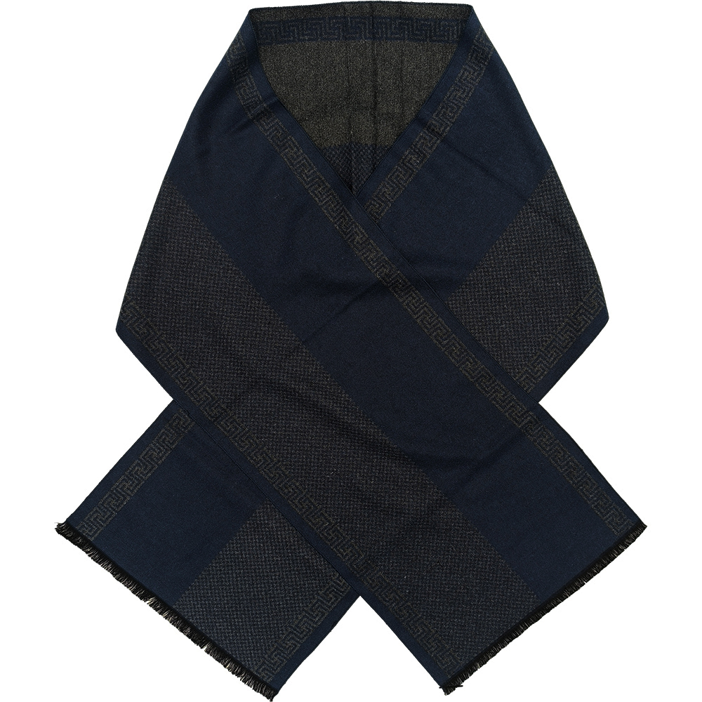Ανδρικό Κασκόλ Μακρύ Διπλής Όψης, Μάλλινο, Δίχρωμο Με Μαίανδρο – Μπλε Σκούρο
