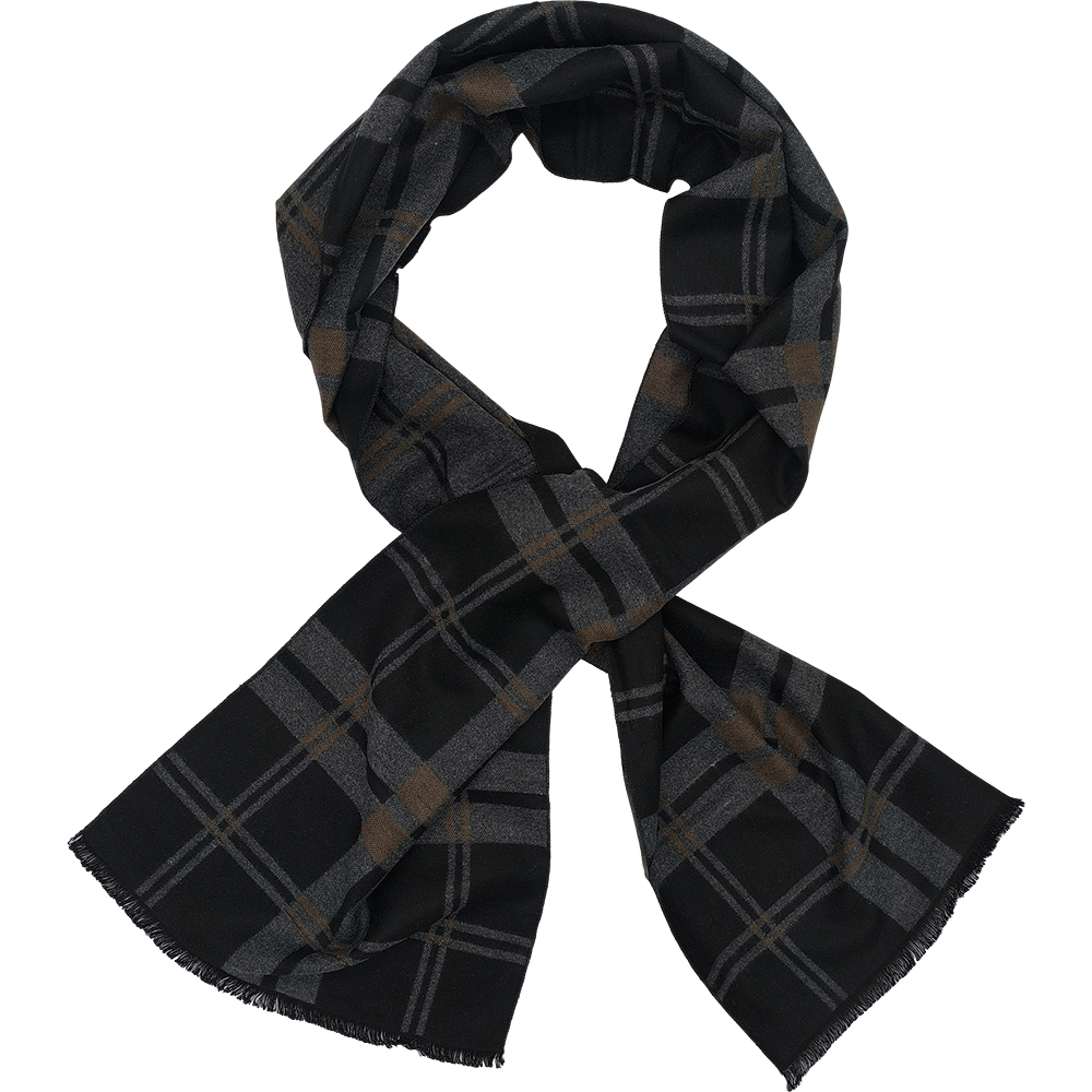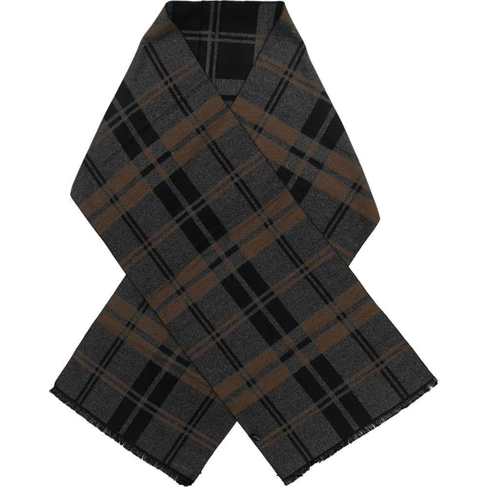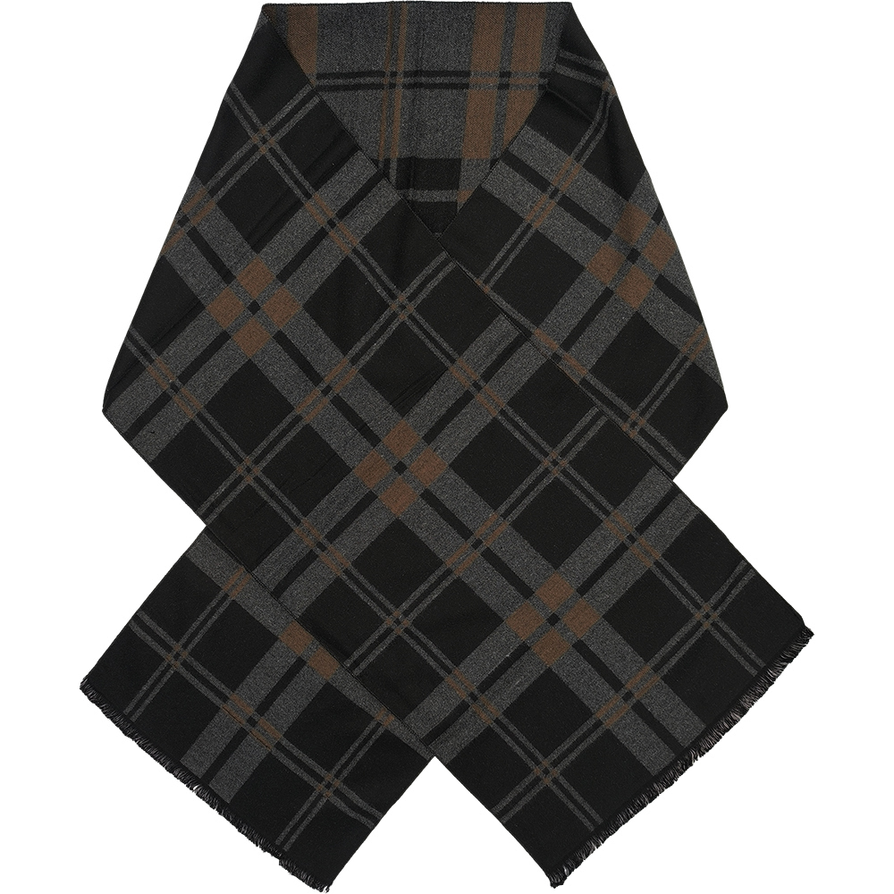 Ανδρικό Κασκόλ Μακρύ Διπλής Όψης, Μάλλινο, Καρό – Μαύρο Με Καφέ Γραμμές