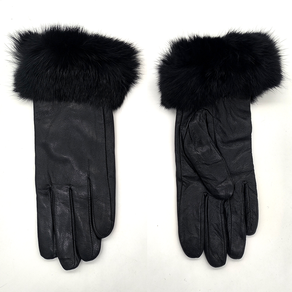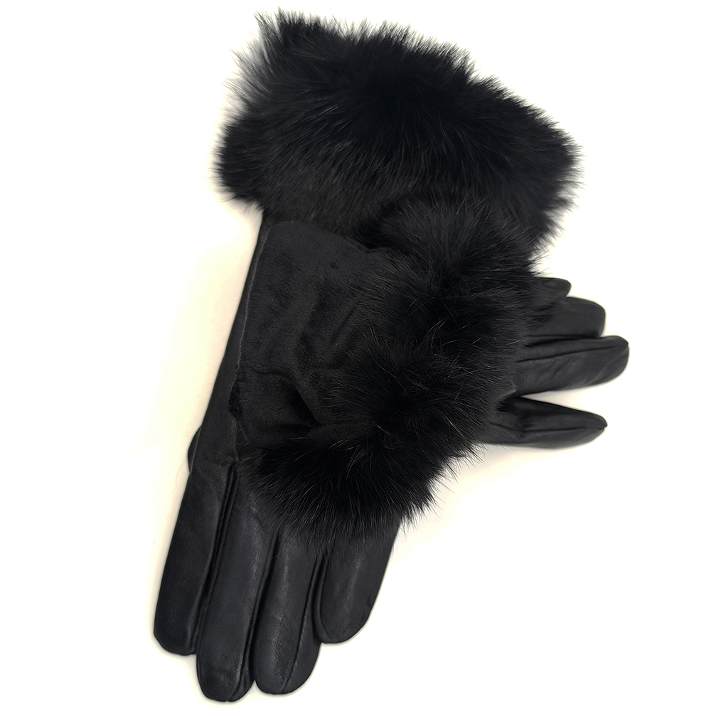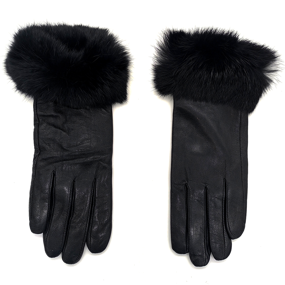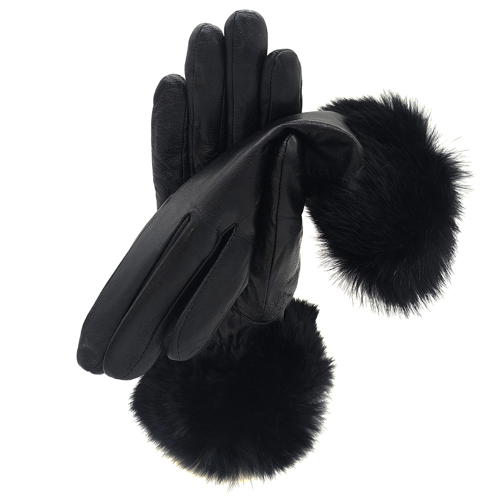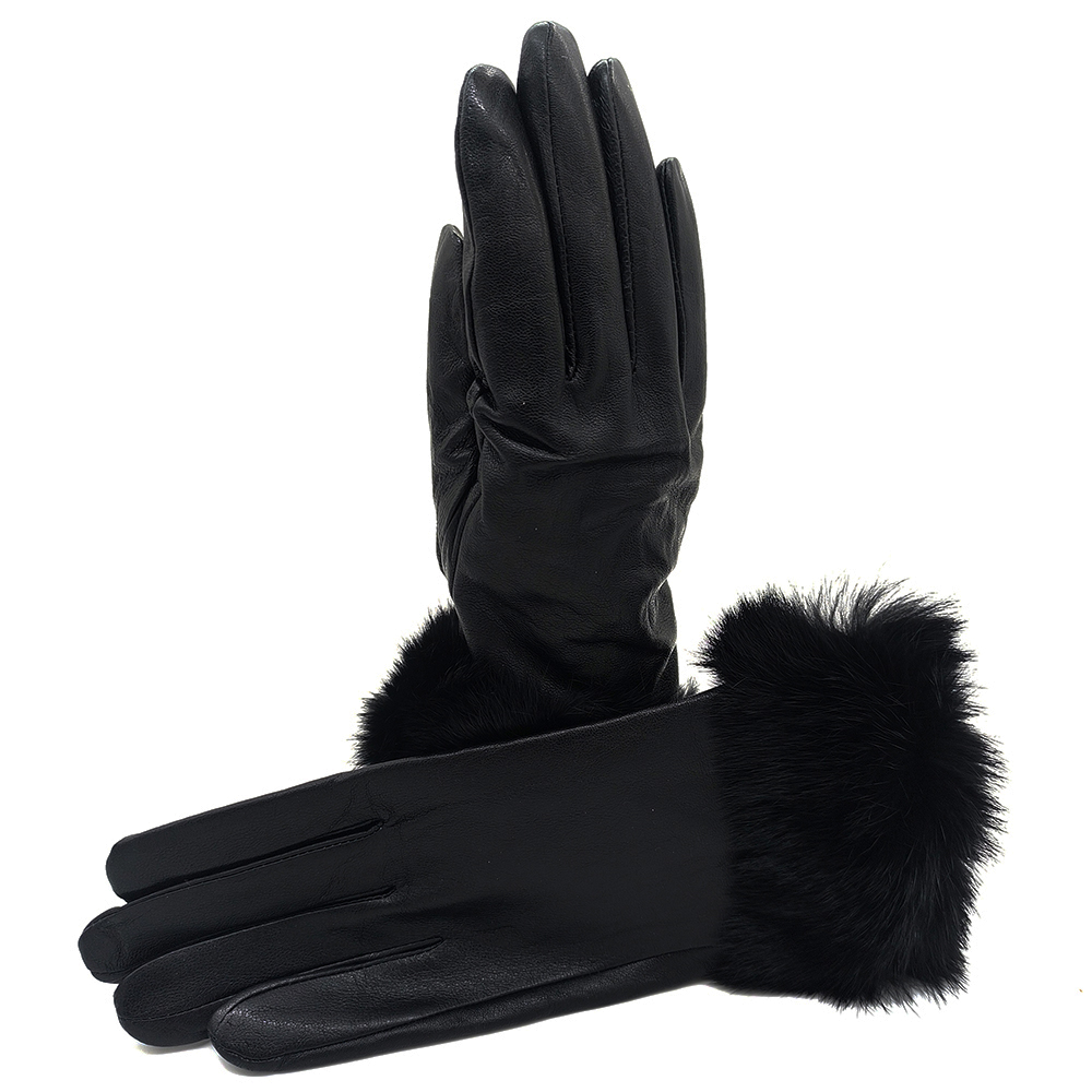 Γυναικεία Γάντια Δερμάτινα Με Γούνα Στον Καρπό & Επένδυση