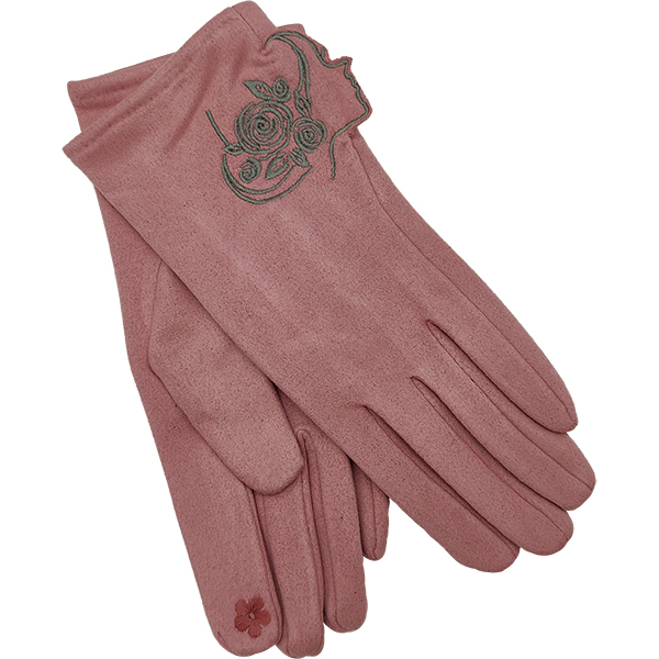 Γυναικεία Γάντια Αφής – Σουέτ Με Πρόσωπο Κέντημα & Επένδυση- Ροζ