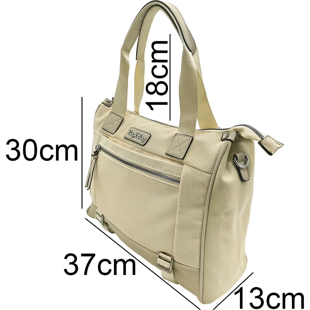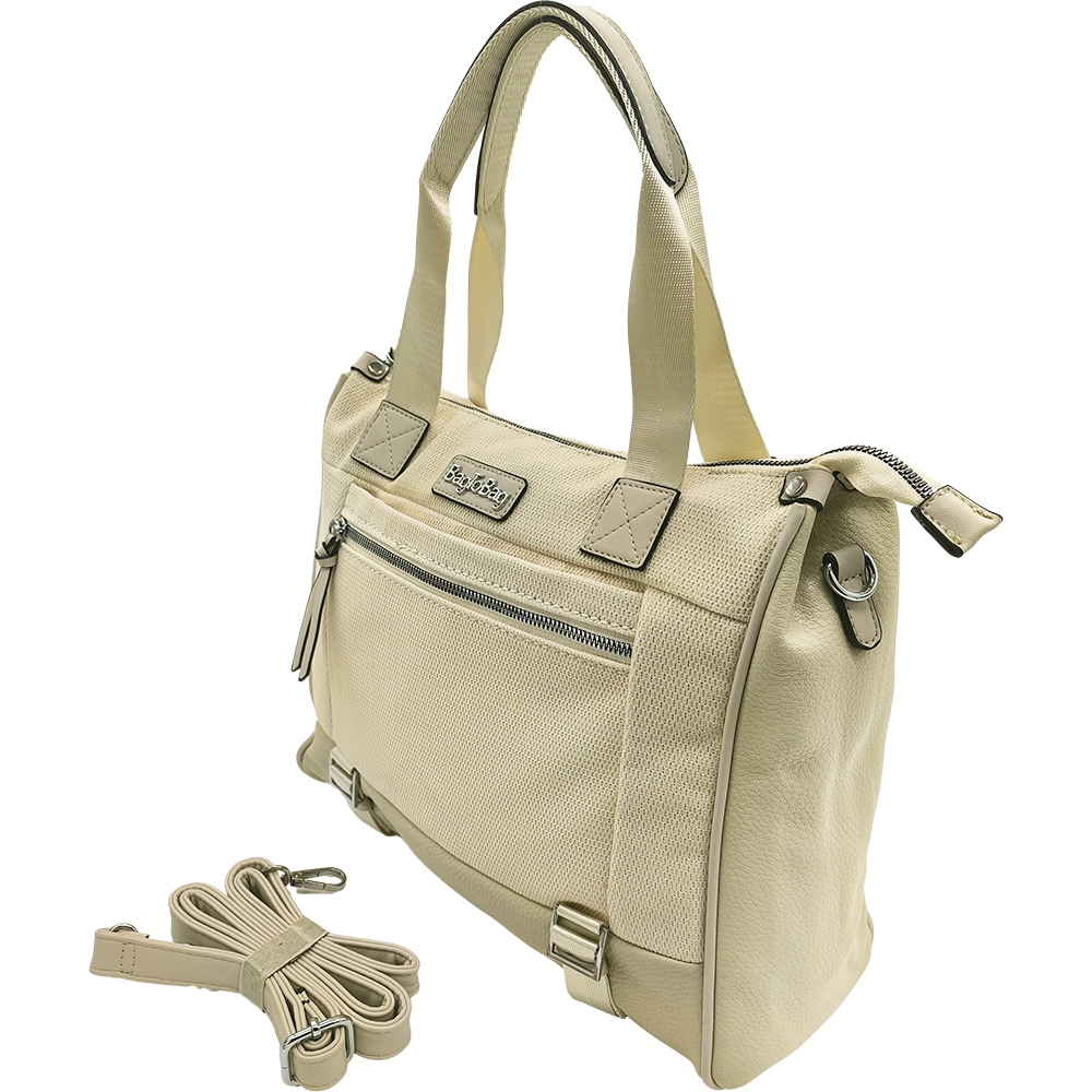 Γυναικεία Τσάντα Χειρός, Μεγάλη, Καλοκαιρινή, Με Αποσπώμενο Λουρί-Ιμάντα, Κρεμ