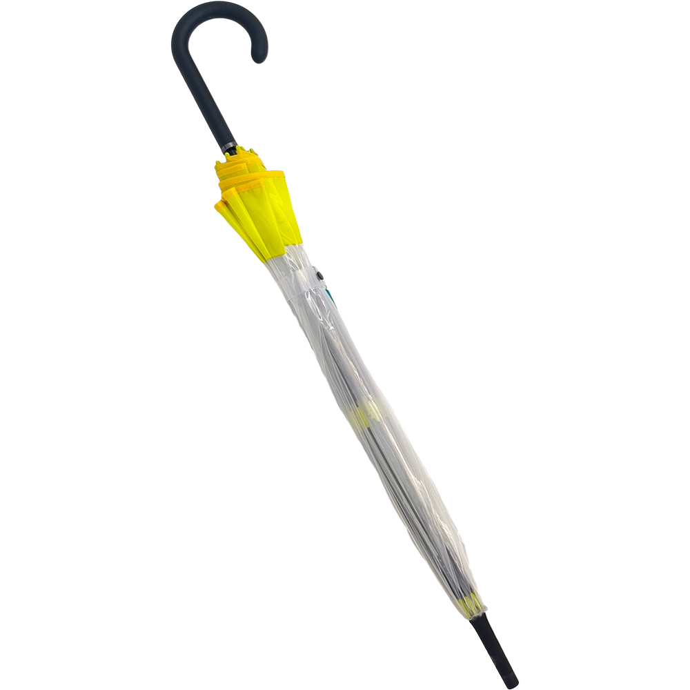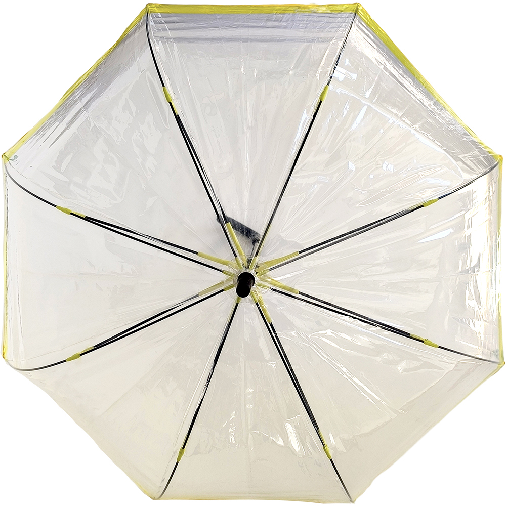 Γυναικεία Ομπρέλα Βροχής Διάφανη, Αυτόματη, Μπαστούνι, Με Ρίγα Στην Άκρη – Κίτρινη