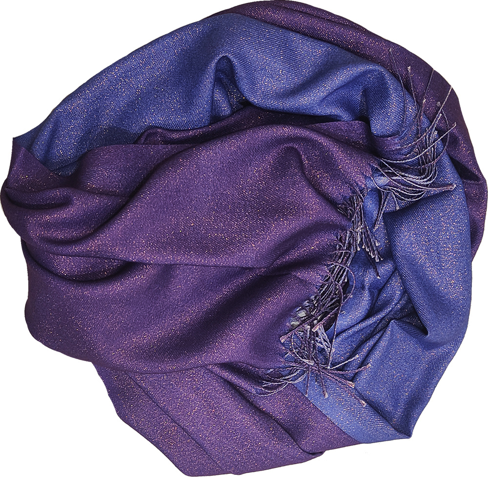 Γυναικεία Πασμίνα Διπλής Όψης, Γυαλιστερή Ίνα Για Βραδινές Εμφανίσεις & Κρόσσια