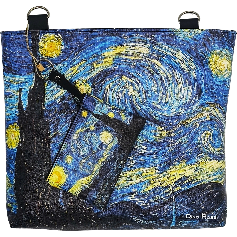 Γυναικεία Τσάντα Ώμου Χειροποίητη Ελληνική, Πίνακας, Van Gogh – Έναστρη Νύχτα & ΔΩΡΟ Πορτοφολάκι / Μπρελόκ