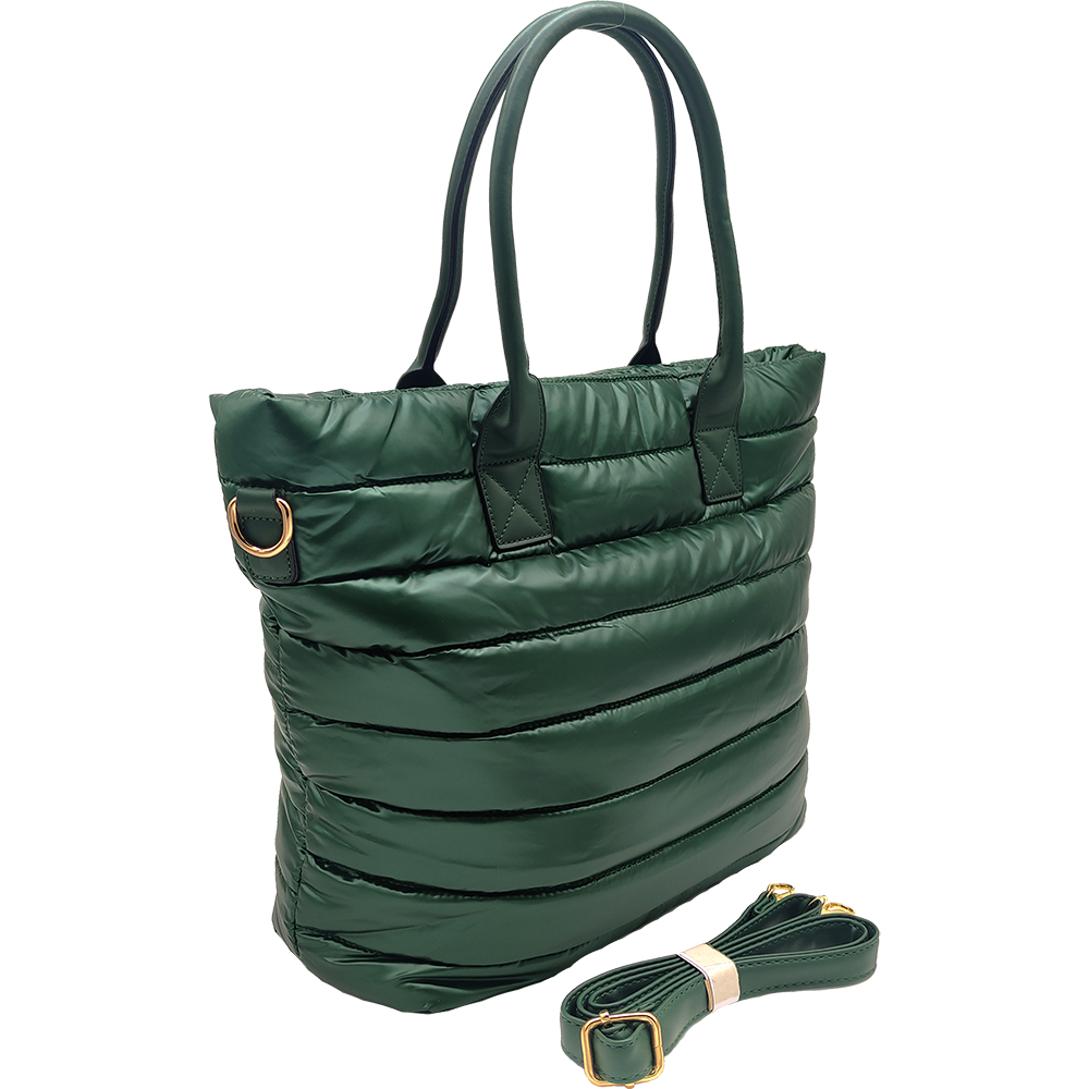 Γυναικεία Τσάντα Puffer Ώμου & Χιαστί, Μεγάλη, Με Εξωτερική Θήκη, Πράσινο