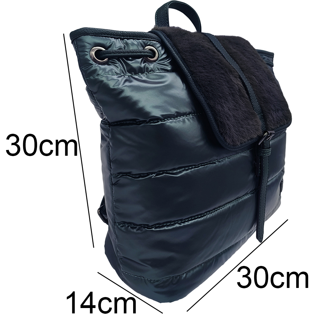 Γυναικεία Τσάντα Puffer Πλάτης, Με Γούνινο Καπάκι