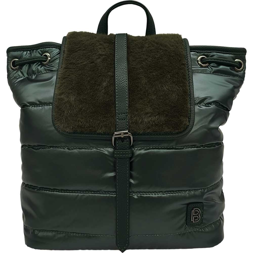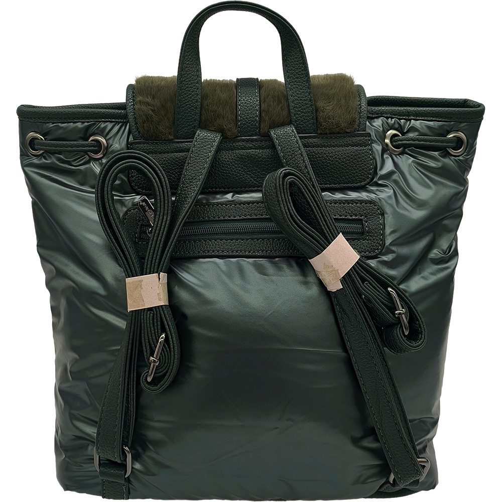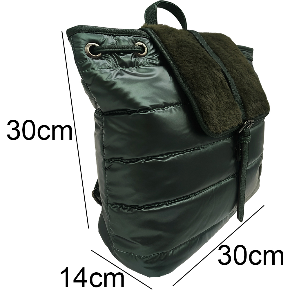 Γυναικεία Τσάντα Puffer Πλάτης, Με Γούνινο Καπάκι, Πράσινο