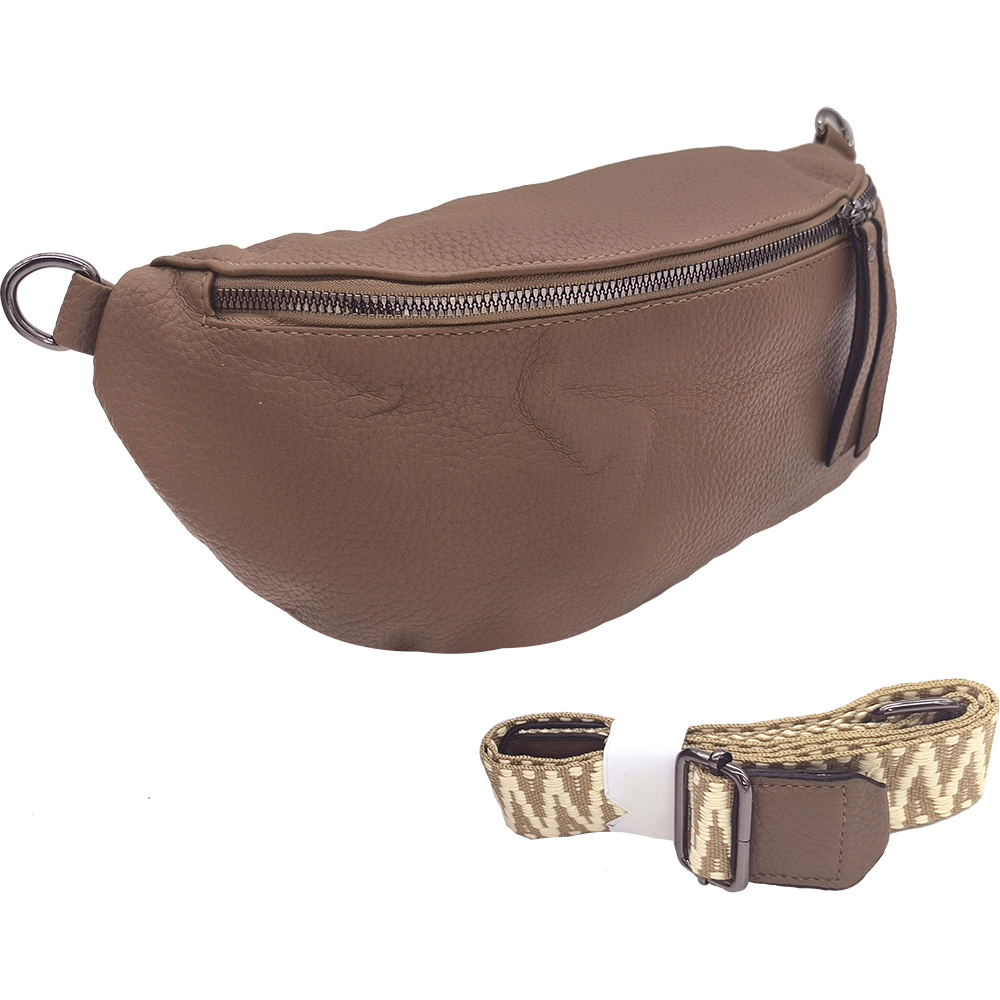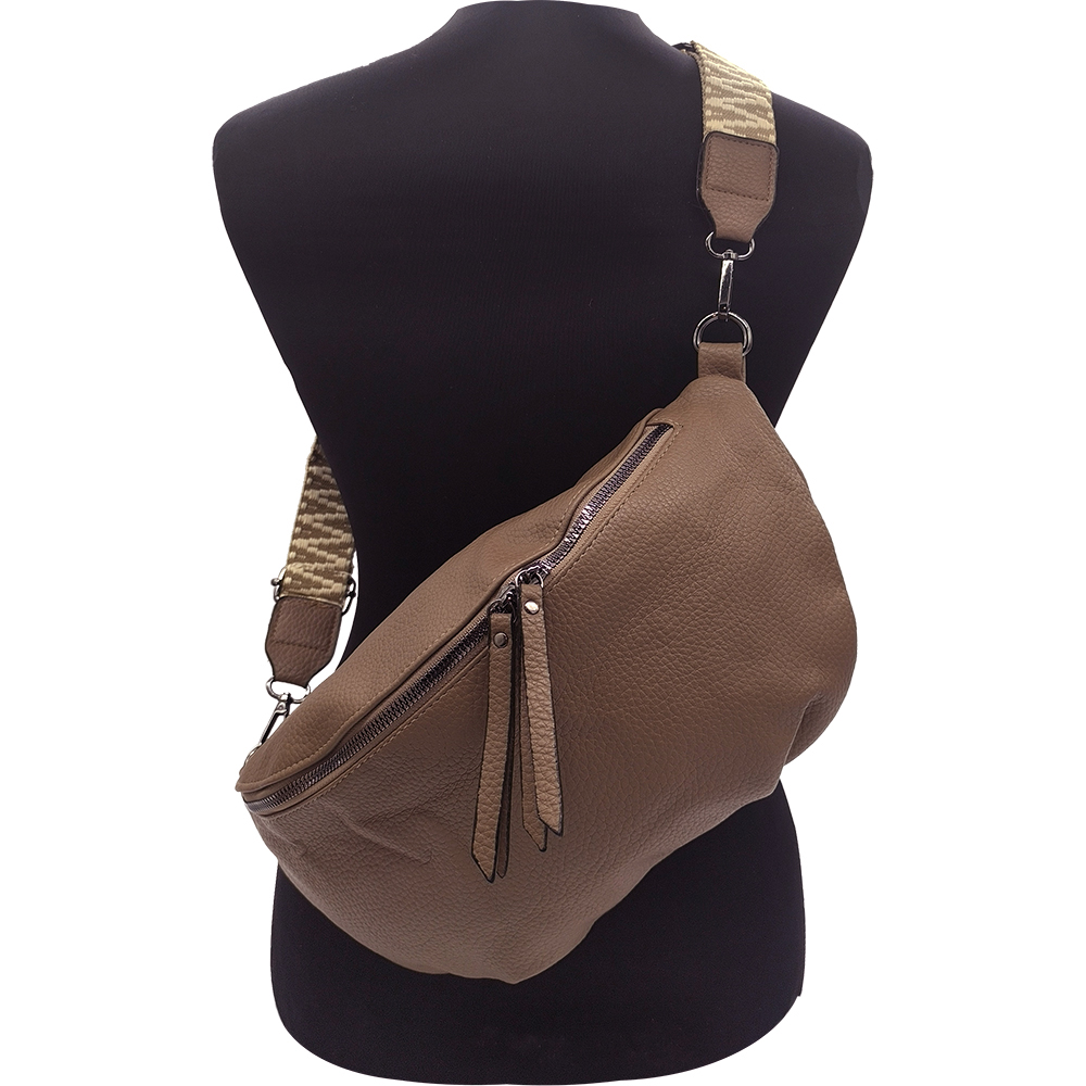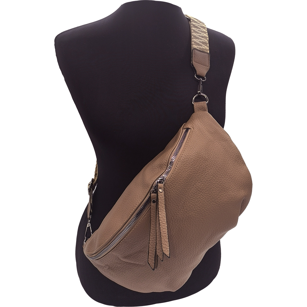 Γυναικεία Τσάντα Χιαστί / Ώμου, Μεσαία Μπανάνα Στήθους Με Αποσπώμενο Ιμάντα-Λουρί, Καφέ Ανοιχτό