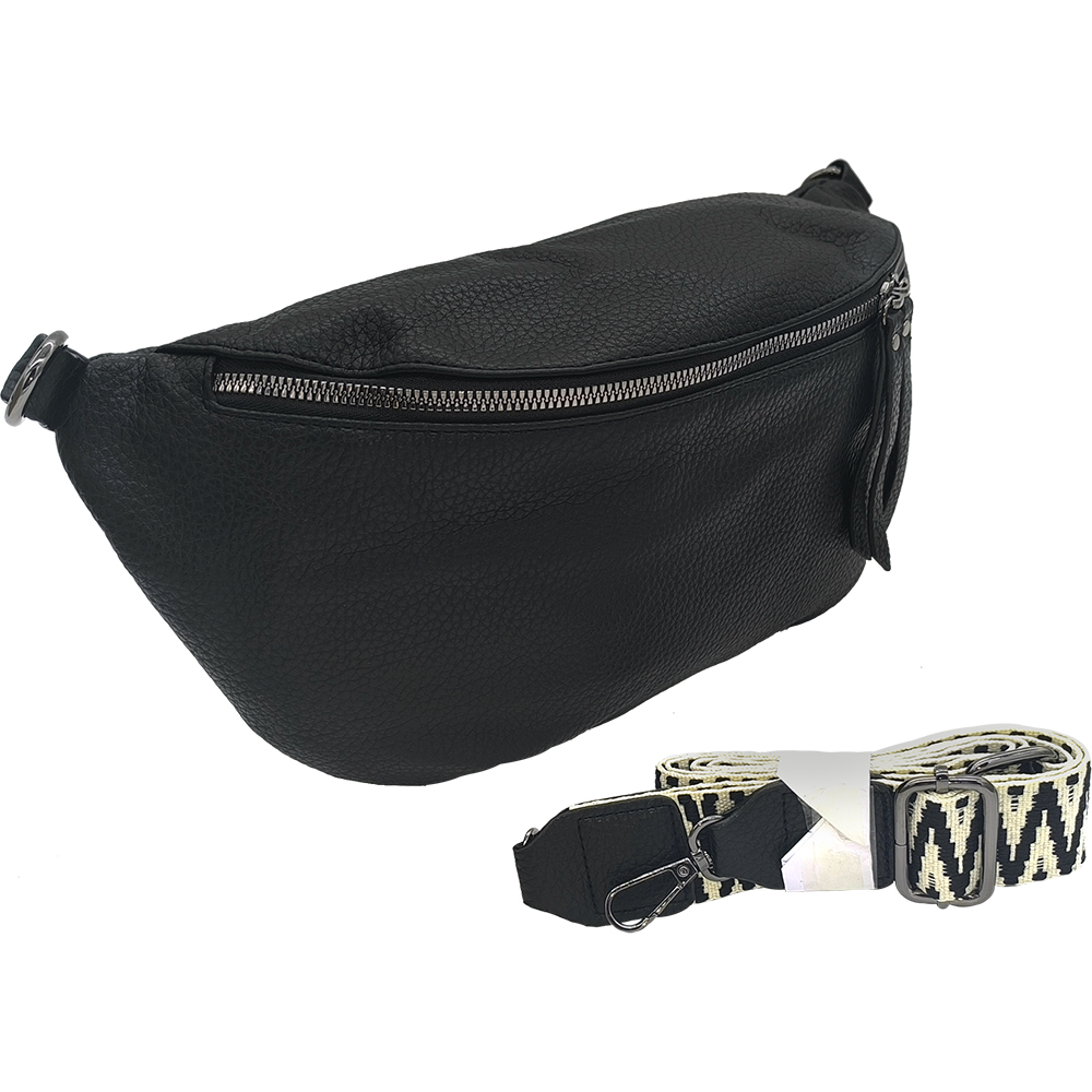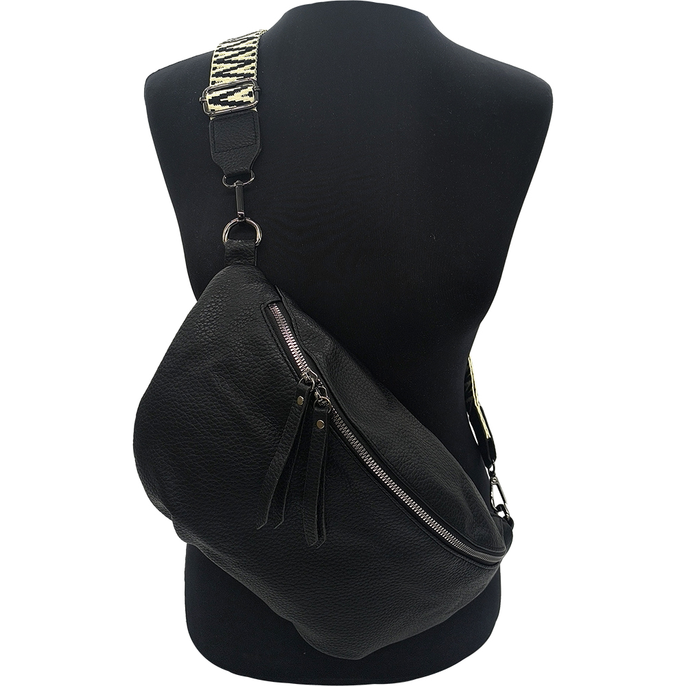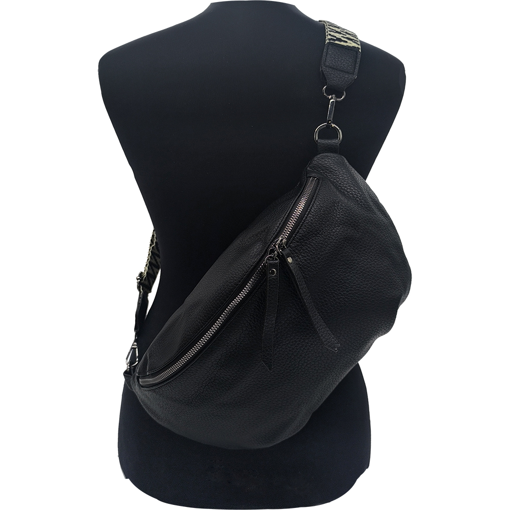 Γυναικεία Τσάντα Χιαστί / Ώμου, Μεσαία Μπανάνα Στήθους Με Αποσπώμενο Ιμάντα-Λουρί, Μαύρο