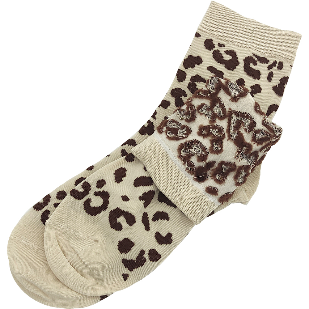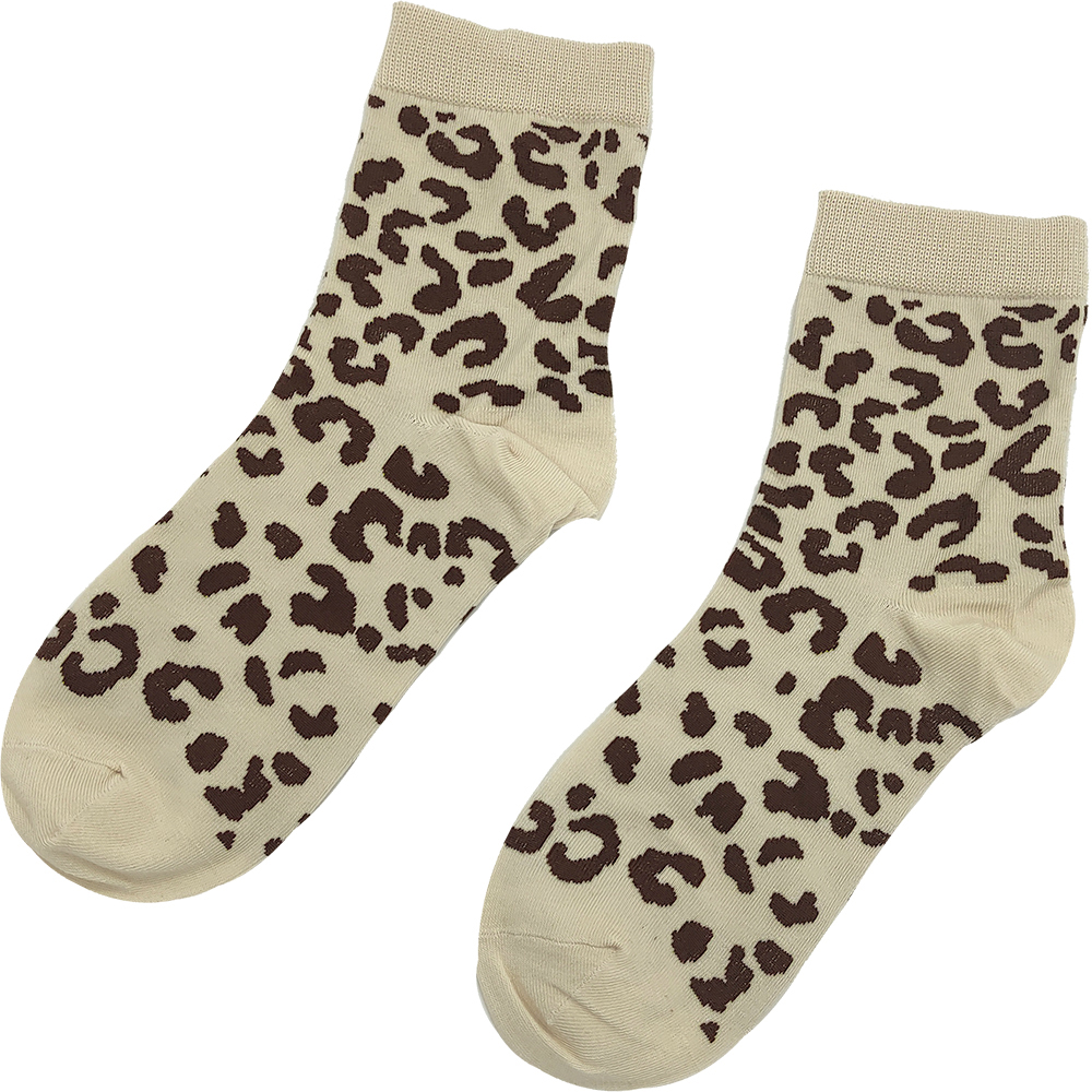 Γυναικείες Κάλτσες Μακριές, Βαμβακερές, Με Σχέδιο Animal Print Λεοπάρ, 1 Ζευγάρι, Νο.36-41, Κρεμ