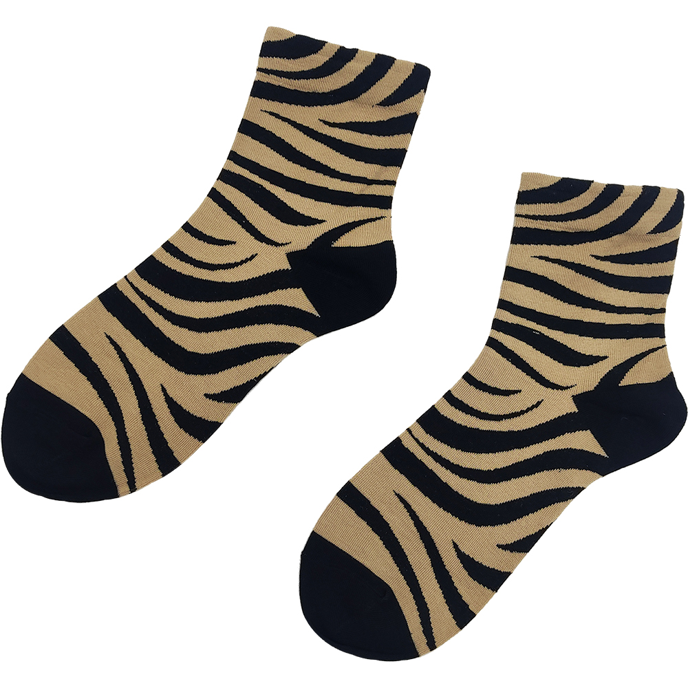 Γυναικείες Κάλτσες Μακριές, Βαμβακερές, Με Σχέδιο Animal Print Ζεβρέ, 1 Ζευγάρι, Νο.36-41, Καφέ Ανοιχτό