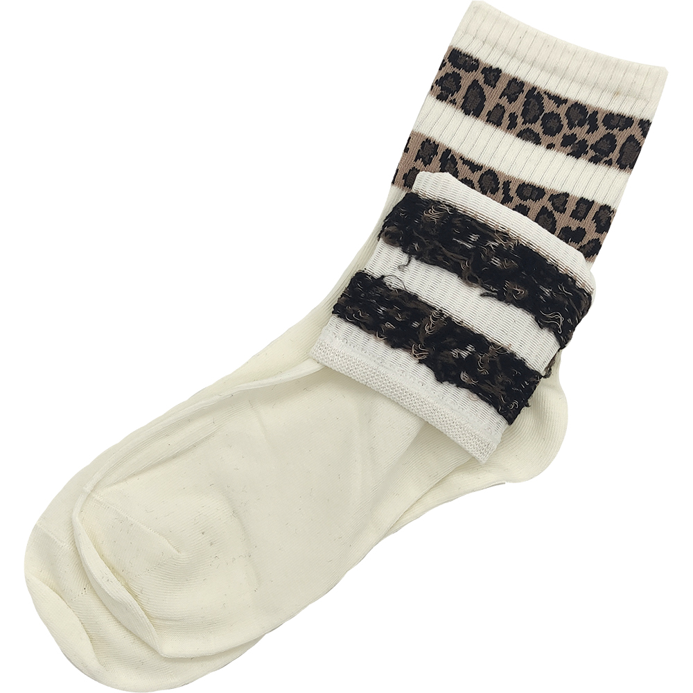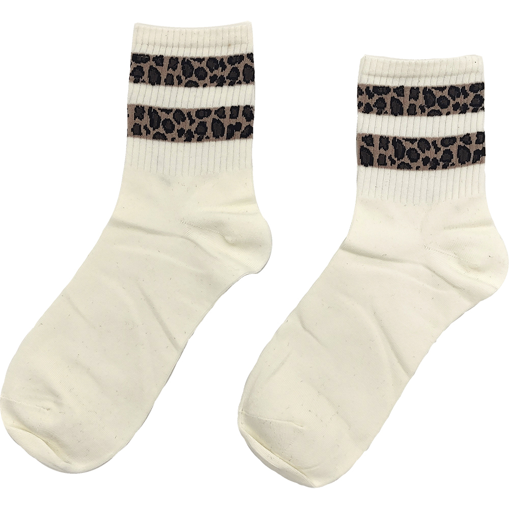 Γυναικείες Κάλτσες Μακριές, Βαμβακερές, Με Σχέδιο Ψηλά Διπλή Ρίγα Animal Print Λεοπάρ, 1 Ζευγάρι, Νο.36-41, Κρεμ