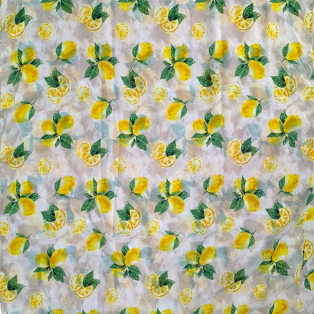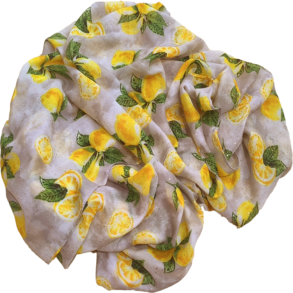 Γυναικείο Φουλάρι – Πασμίνα Λεπτή, Γάζα Με Σχέδιο Λεμόνια Με Χρυσές Πιτσιλιές