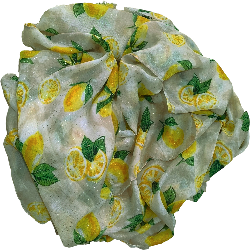 Γυναικείο Φουλάρι – Πασμίνα Λεπτή, Γάζα Με Σχέδιο Λεμόνια Με Χρυσές Πιτσιλιές