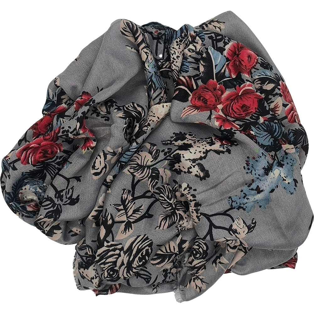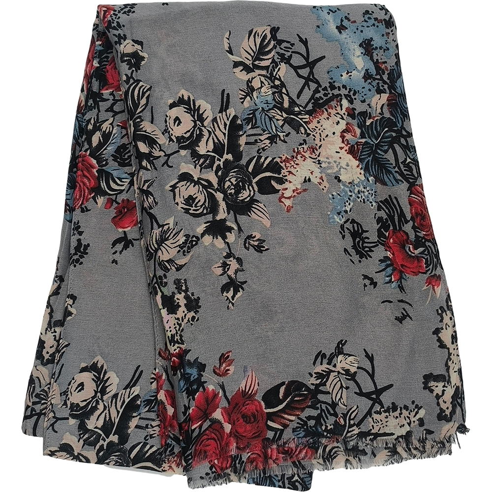 Γυναικείο Φουλάρι – Πασμίνα Λεπτή, Βαμβακερή, Με Floral Σχέδια – Γκρι