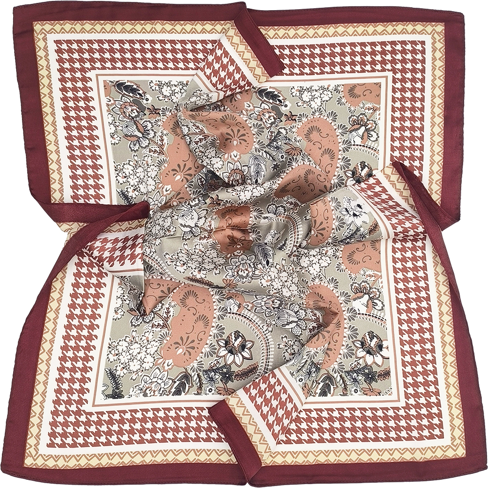 Γυναικείο Μαντήλι Λαιμού Μεταξωτό 100%, Με Σχέδιο Πτι Καρό & Λαχούρια – Κόκκινο