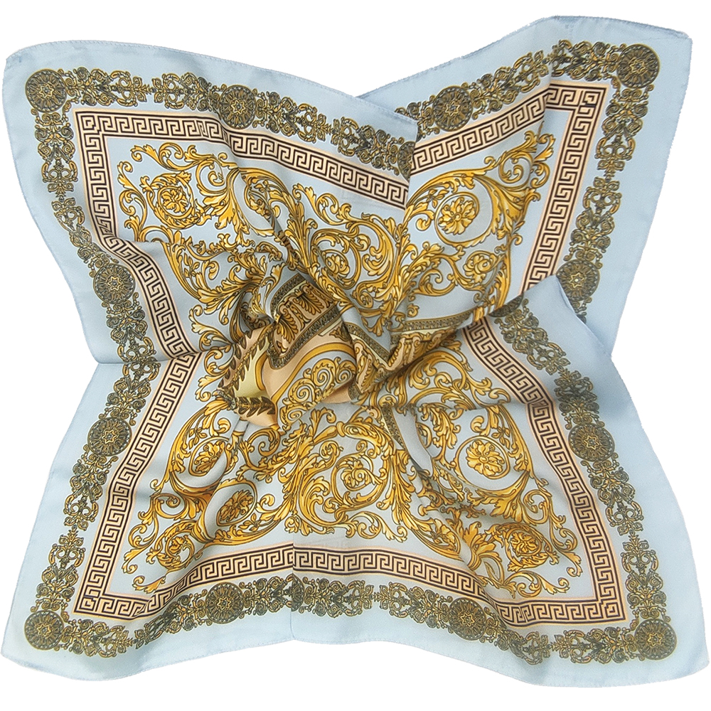 Γυναικείο Μαντήλι Λαιμού Μεταξωτό, Μπαρόκ Με Σχέδια & Μαίανδρο – Γαλάζιο