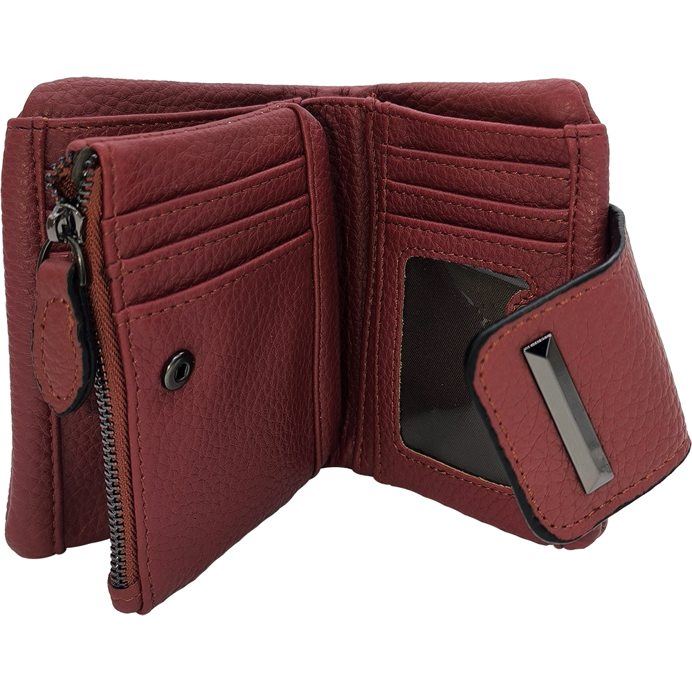 Γυναικείο Πορτοφόλι Μεσαίο, Μαλακό Με Πολλές Θήκες Για Κάρτες, Κλείνει Με Κούμπωμα