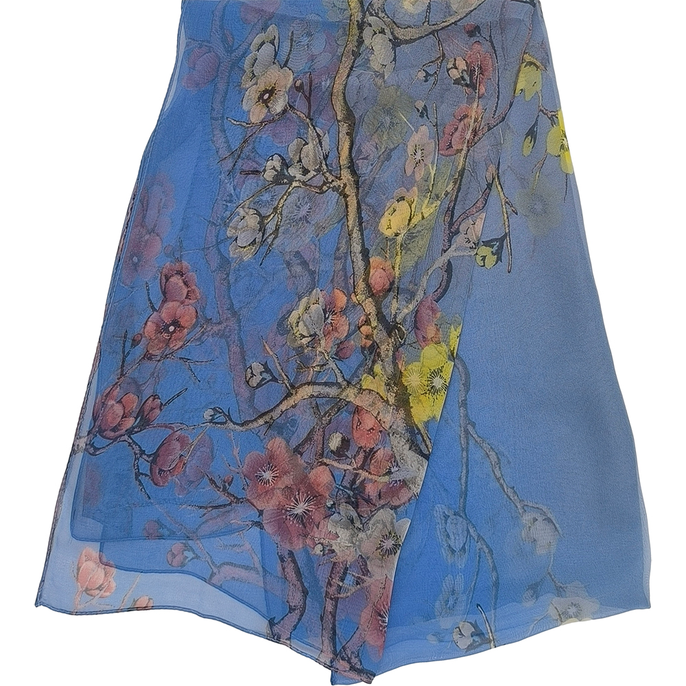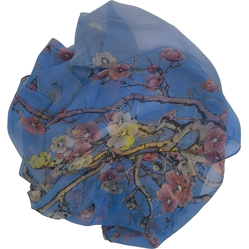 Γυναικείο Μαντήλι Λαιμού Στενόμακρο, Λεπτό, Σχέδιο Αμυγδαλιά – Μπλε