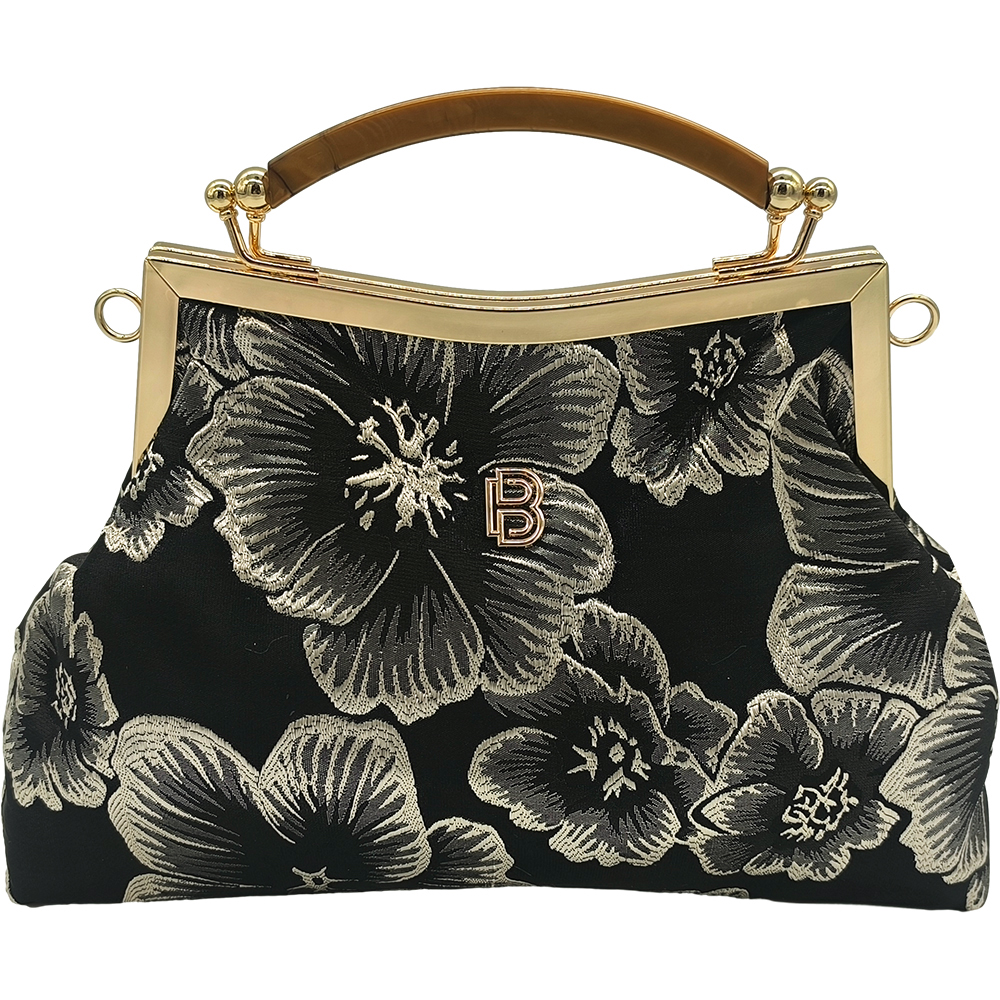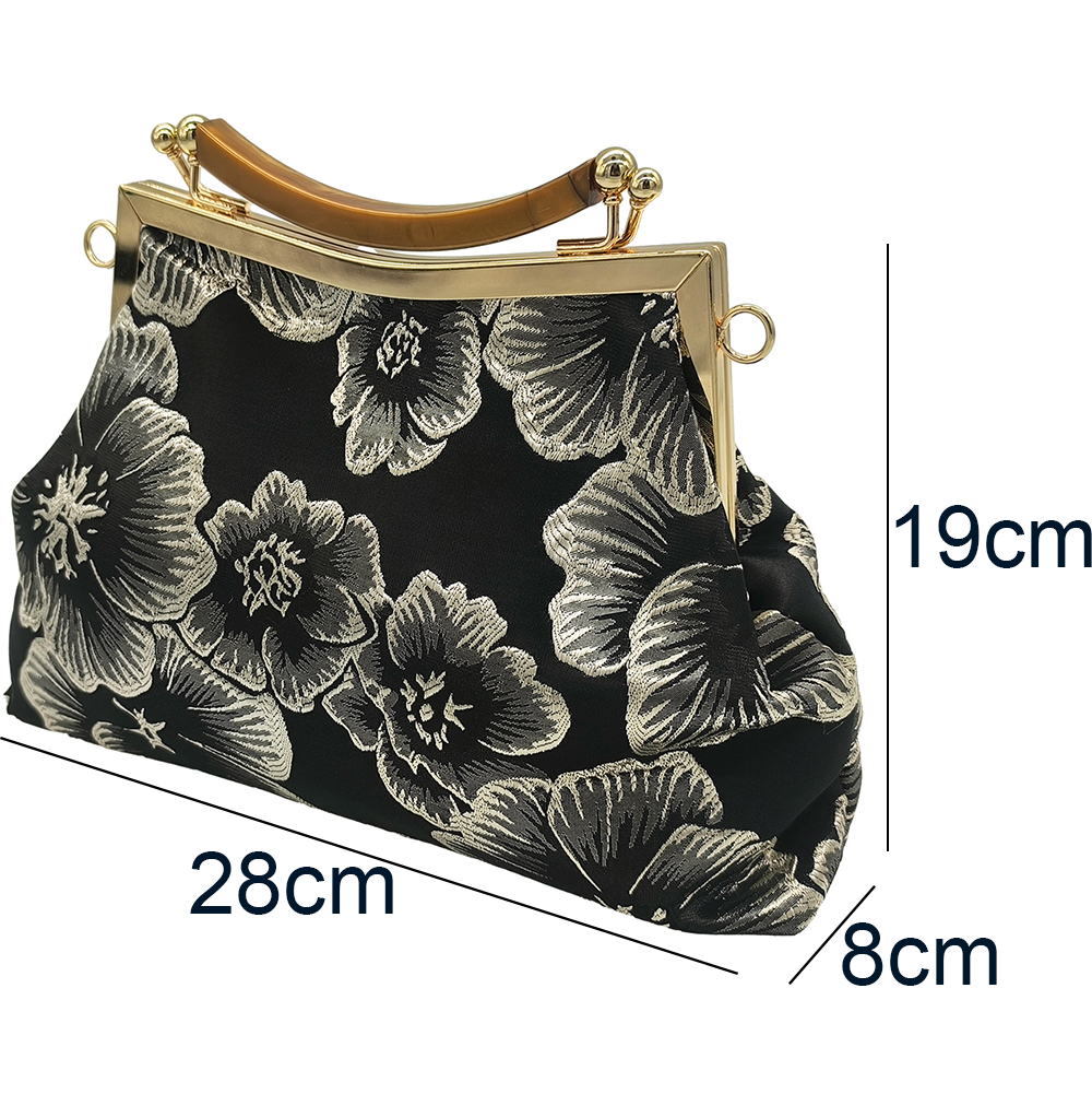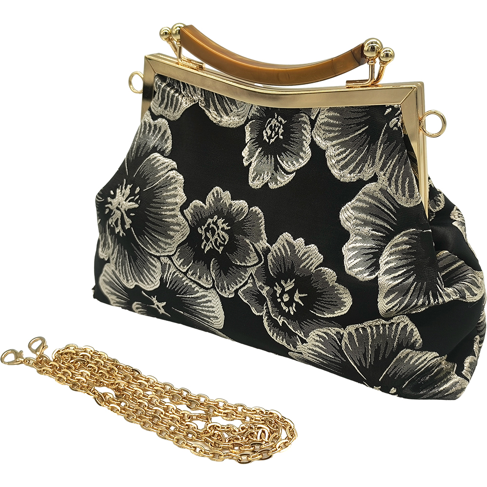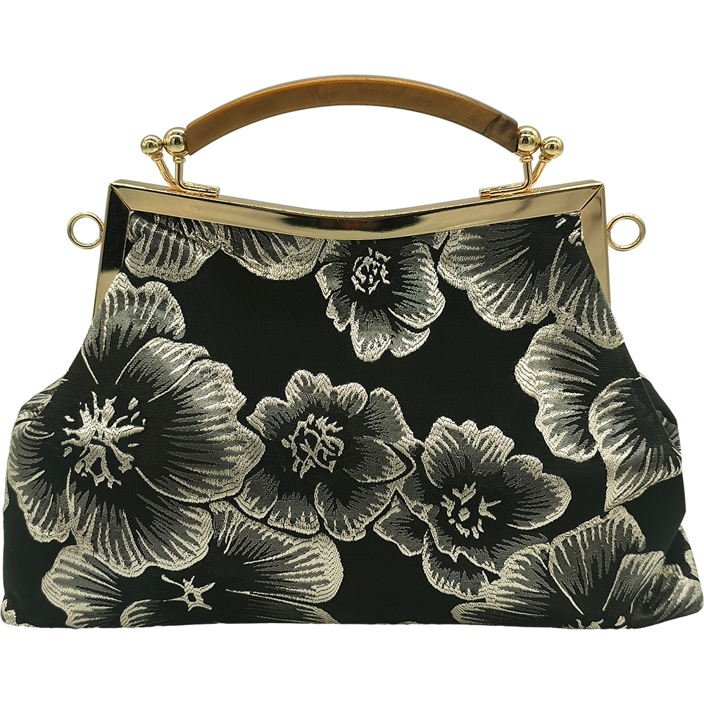 Γυναικείο Τσαντάκι Clutch, Βραδινό, Vintage Με Χρυσό Κέντημα – Μαύρο