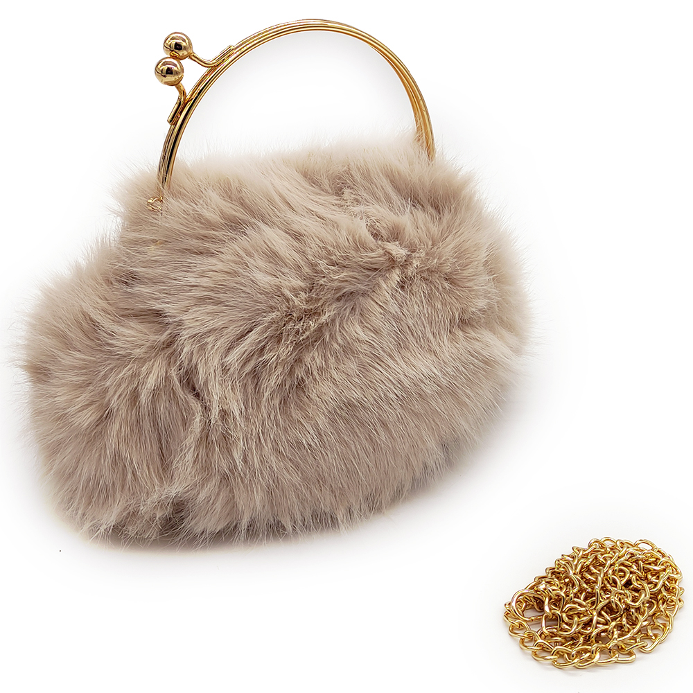 Γυναικείο Τσαντάκι Χειρός Γούνινο, Με Clutch Λαβή & Χρυσή Αλυσίδα