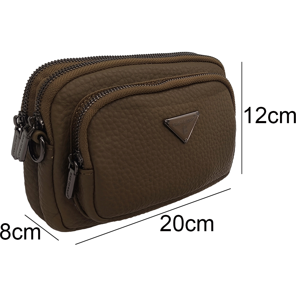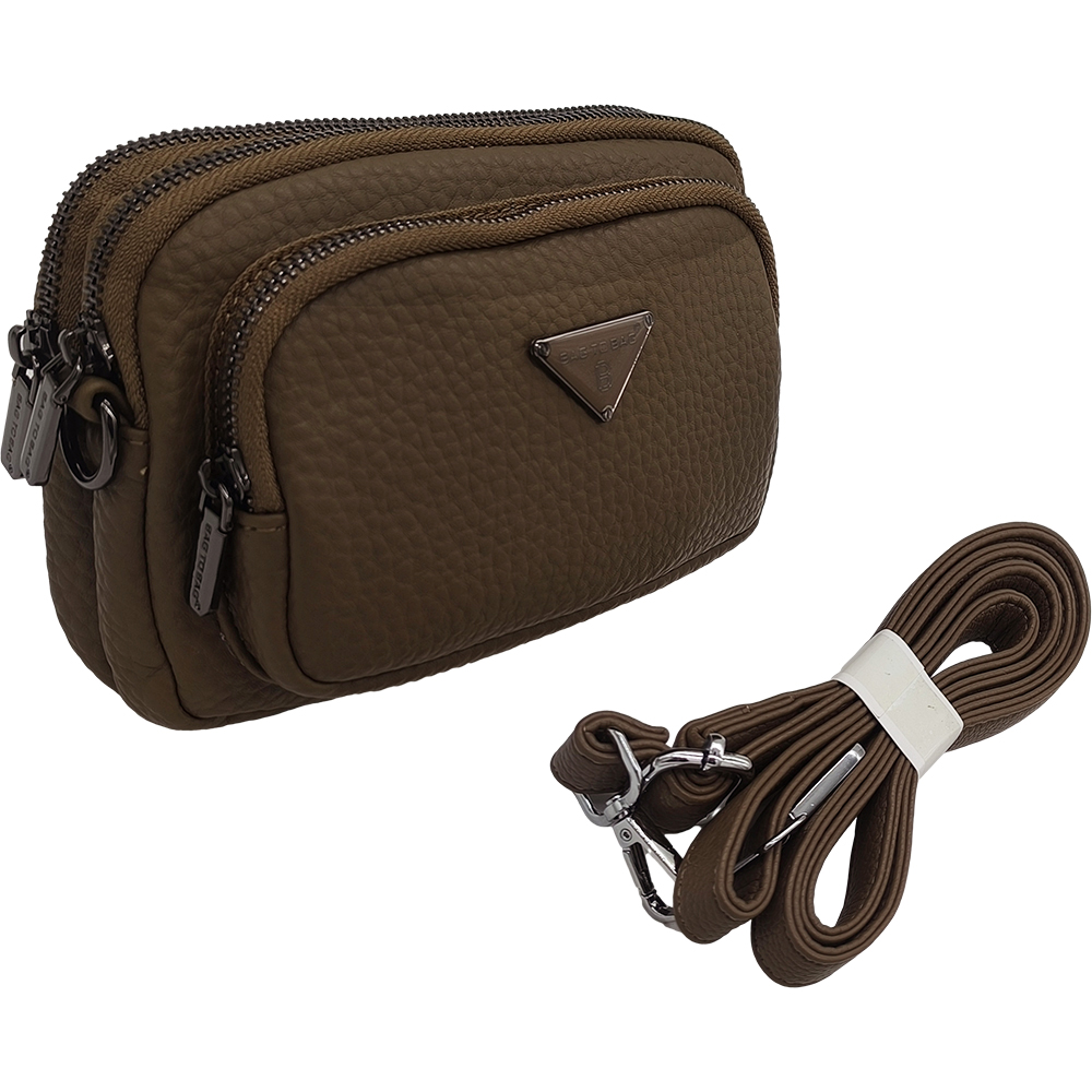 Γυναικείο Τσαντάκι Χιαστί Με Πολλές Θήκες & Αποσπώμενο Ιμάντα, Μικρό, Καφέ Ανοιχτό
