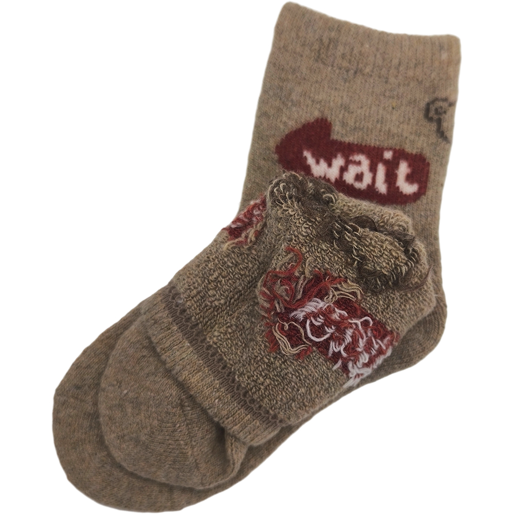 Παιδικές Κάλτσες Πετσετέ, Μακριές, Βαμβακερές, Με Σχέδιο “WAIT”, 1 Ζευγάρι, Νο.24-29, Καφέ Ανοιχτό