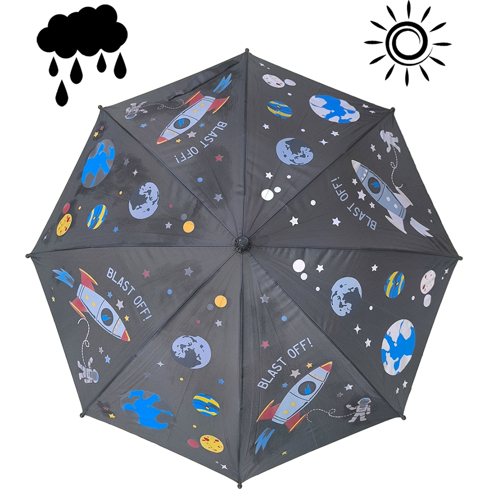 Παιδική Ομπρέλα Βροχής Που Αλλάζει Χρώμα Στη Βροχή & Με Σφυρίχτρα, Αυτόματη, Μπαστούνι, Διάστημα & Πλανήτες