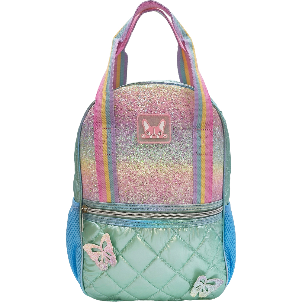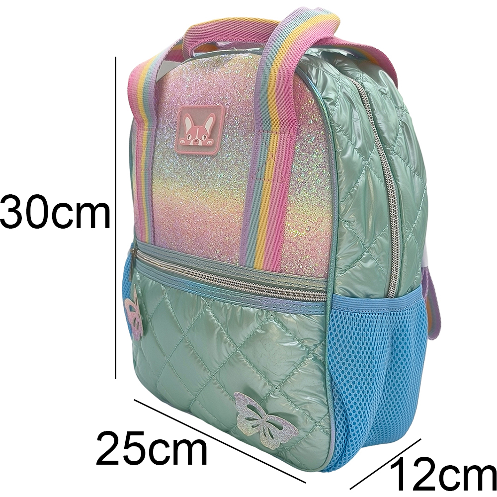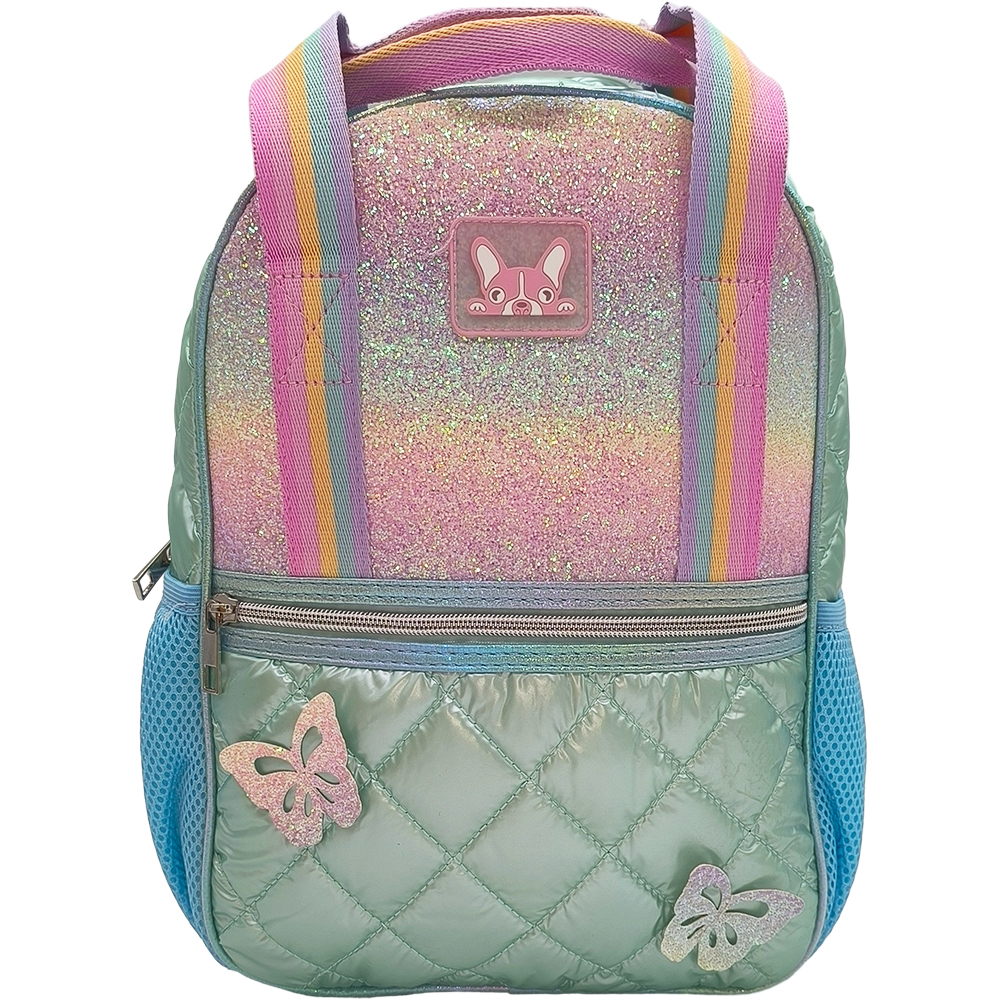 Παιδική Τσάντα Πλάτης Puffer Με Glitter & Πεταλούδες, Μεγάλη Λαβή Χειρός