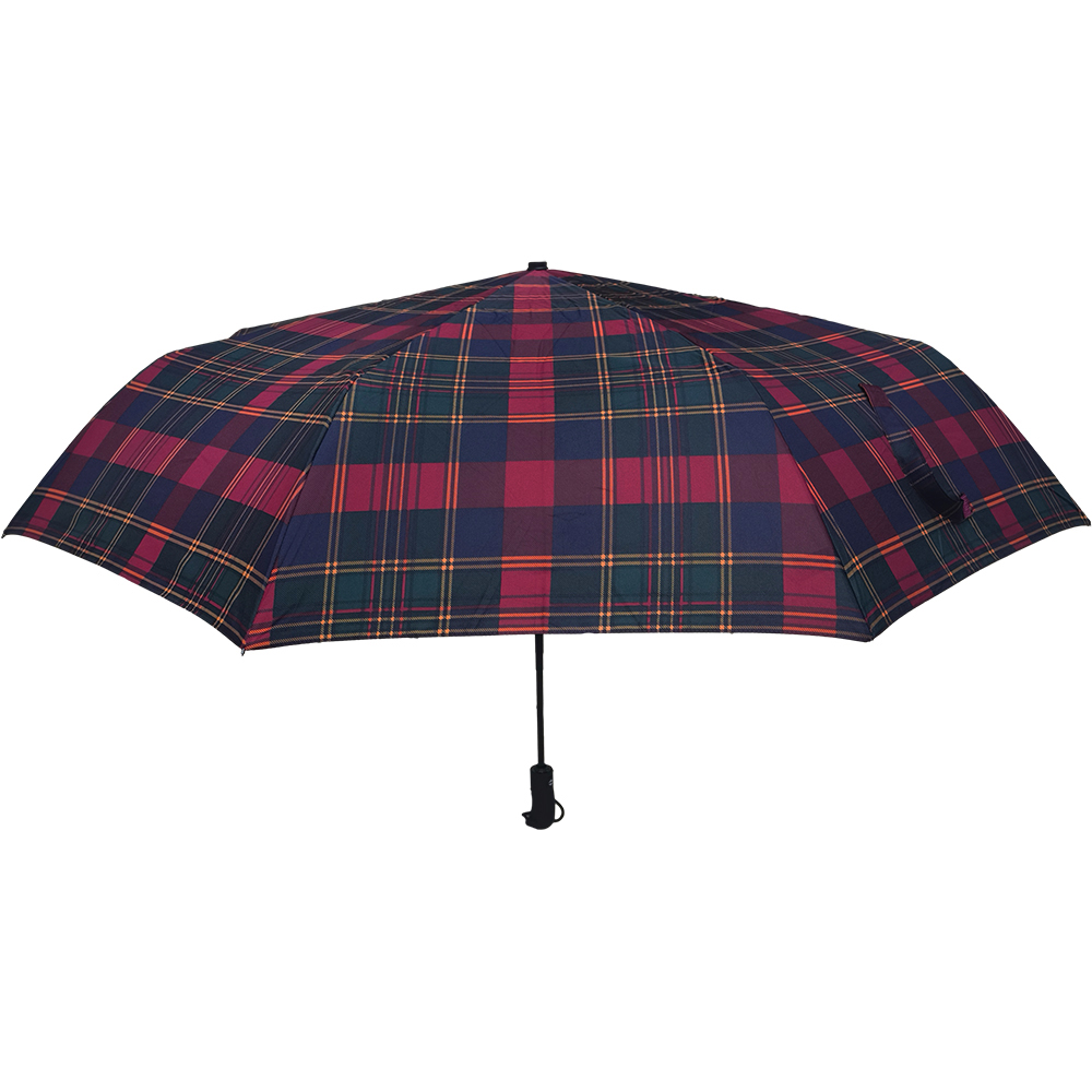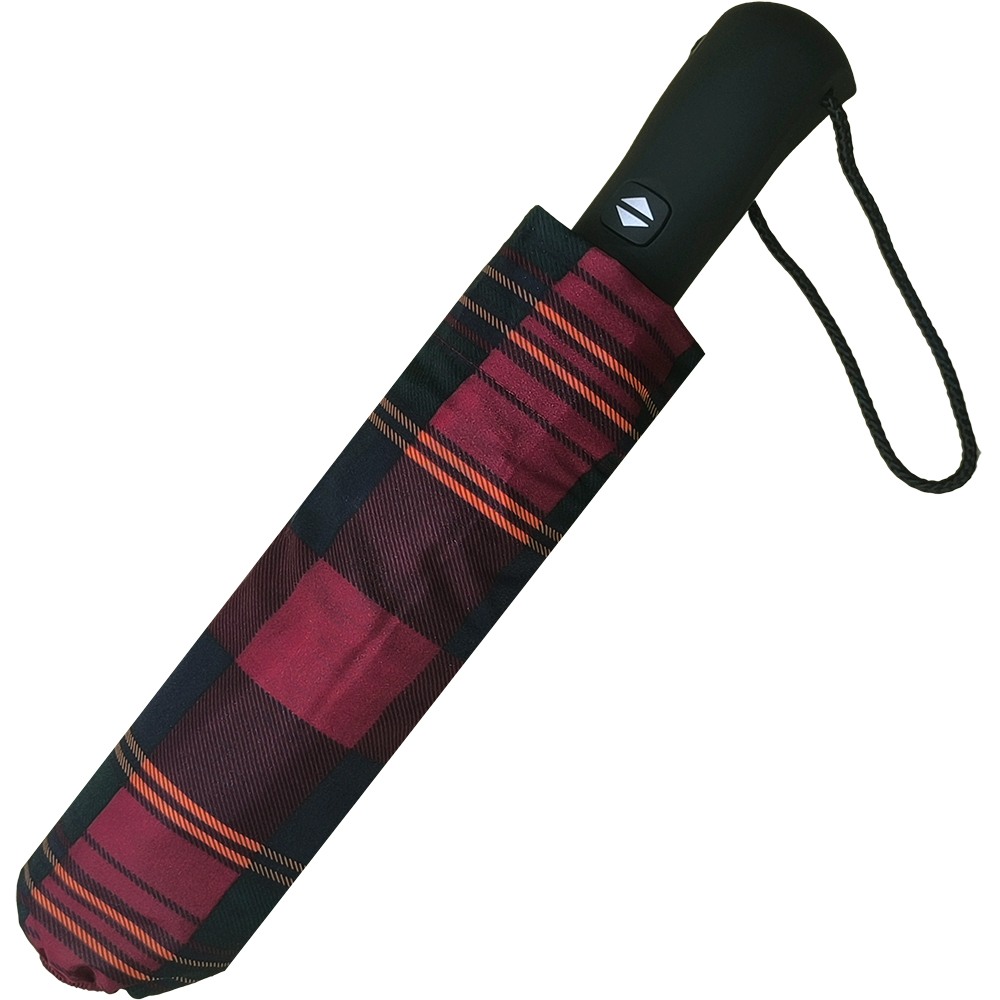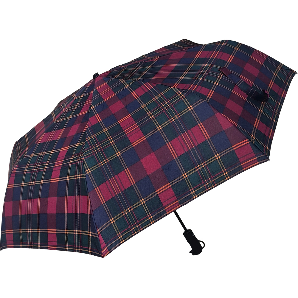 Unisex Ομπρέλα Βροχής Σπαστή Πολλή Μεγάλη, Open/Close Αυτόματη Με Καρό Σχέδιο – Κόκκινο Σκούρο