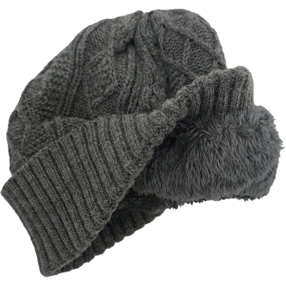 Unisex Σκούφος Πλεκτός Με Μεγάλο Γύρισμα & Επένδυση, Σχέδιο Πλεξούδες