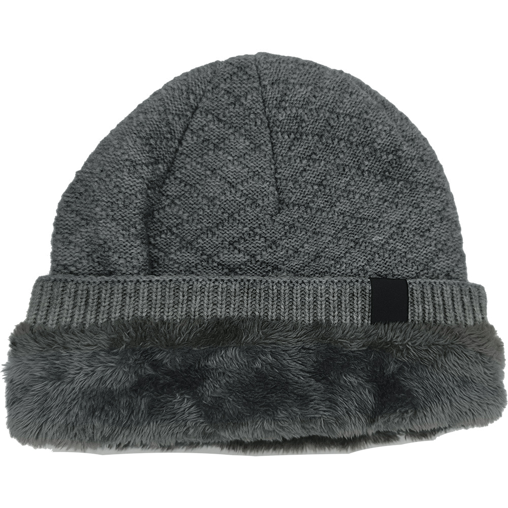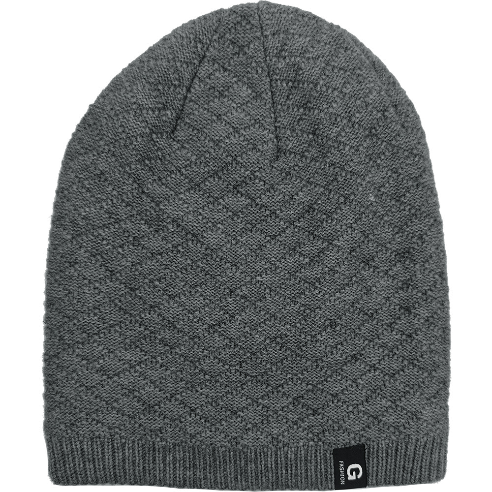 Unisex Σκούφος Μακρύς Πλεκτός Με Επένδυση – Σχέδιο Ρόμβοι – Γκρι